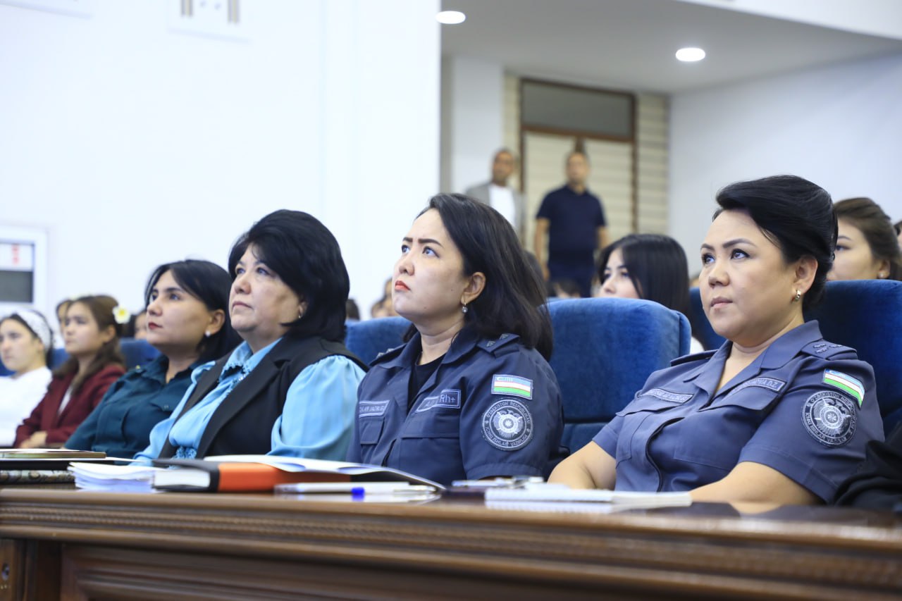 At the beginning of the event, participants were shown a prepared social video on the topic. Following this, D.Z.Khudoyberganova, Head of the Department of Internal Affairs of the Ministry of Internal Affairs of the Republic of Uzbekistan, provided detailed information on ways to prevent administrative offenses and crimes committed by women, minors, and youth.