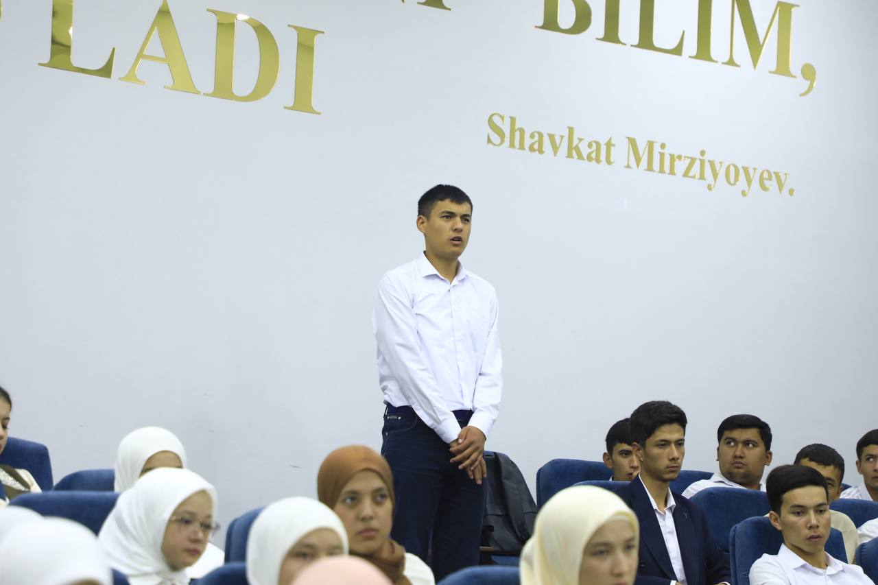 Initially, Rector Bakhtiyorjon Akbaraliyev provided detailed information about the reforms being implemented in the field of education in our country, in particular, the introduction of dual education, and emphasized the need for students to effectively use these opportunities, strengthen their knowledge and skills in practice, and develop as competitive specialists.