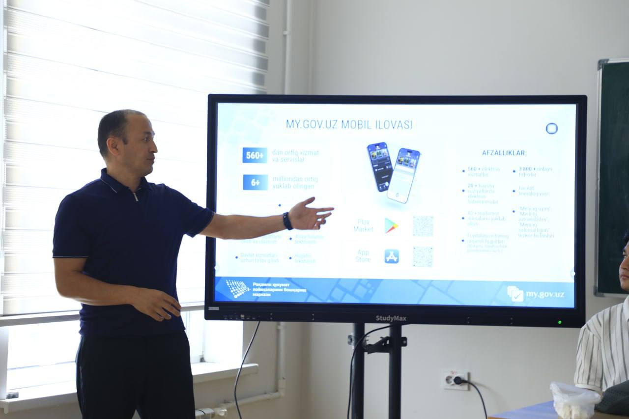 During the meeting, qualified mentors and industry specialists explained in detail the procedure for effective use of public services through the portal my.gov.uz, the possibilities of the "One Million Programmers" project, as well as methods of acquiring in-depth knowledge in digital technologies, programming and other modern IT areas through the online educational platform "Coursera".