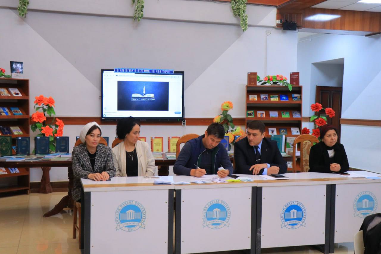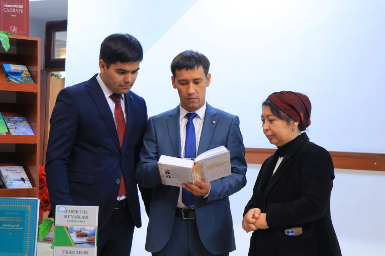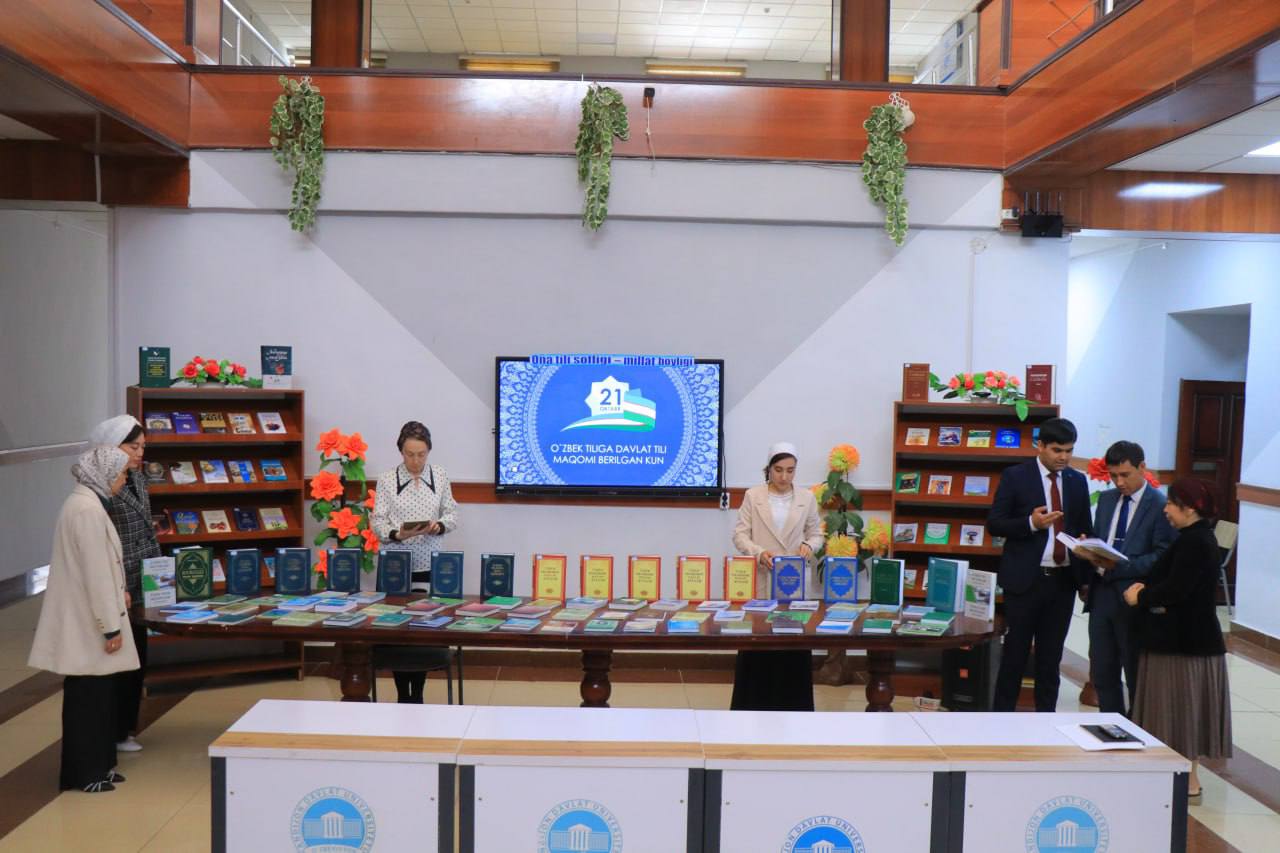 Within the framework of the event, employees of the University's Information Resource Center organized a rich book exhibition under the motto “Language is the pride of the nation, the foundation of the nation's prosperity,” dedicated to the 36th anniversary of granting the Uzbek language the status of the state language.