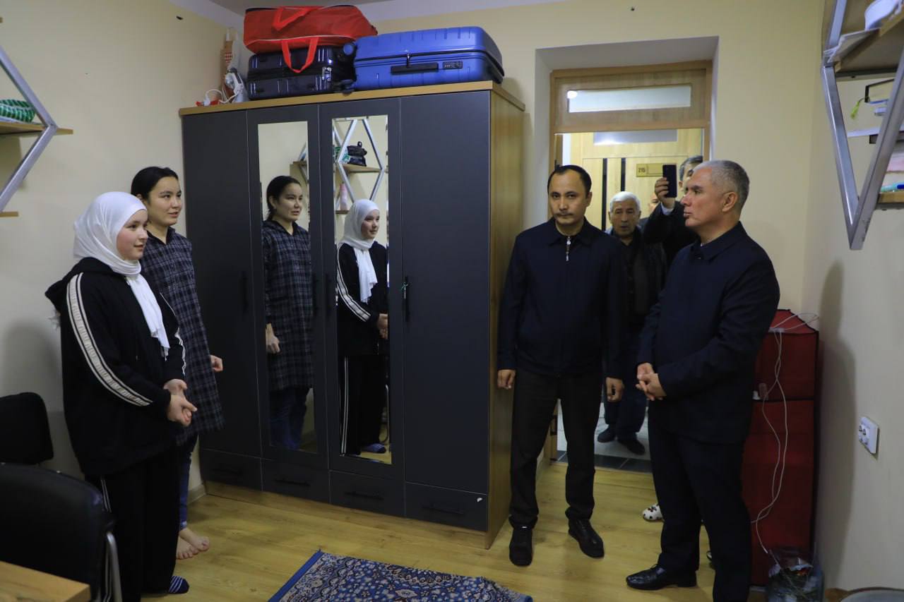 Сначала ректор ознакомился с условиями тепло- и энергосистемы, духовно-просветительских центров, библиотек, а также кухни и ванных комнат, и провел искреннюю беседу с активистами студенческого общежития. Студенты высказали свои мнения и отметили, что удовлетворены существующими условиями.