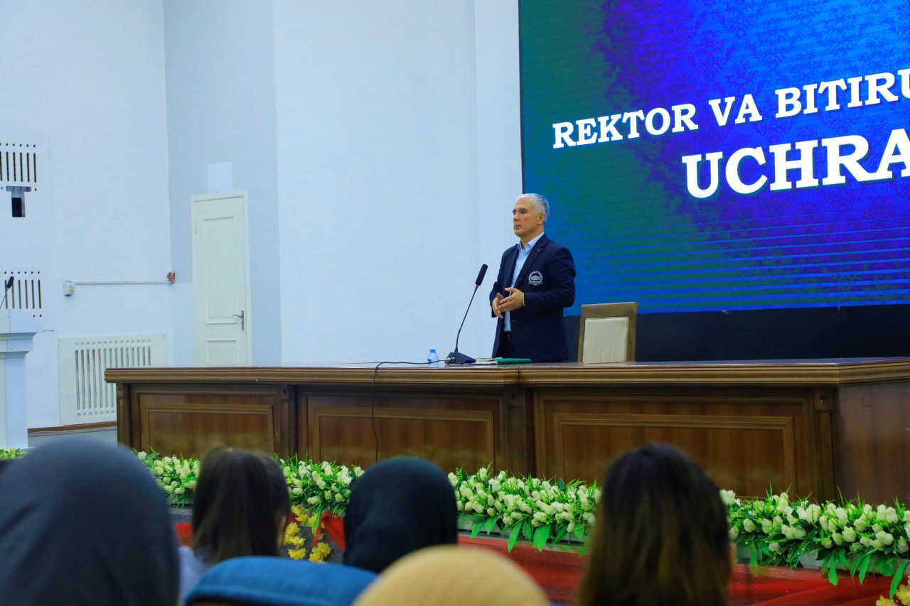 Uchrashuvda rektor mamlakatimizda ta’lim tizimini takomillashtirish, ilm-fan va innovatsiyalarni rivojlantirish yo‘lida yurtboshimiz tomonidan amalga oshirilayotgan keng ko‘lamli islohotlar, bu jarayonda yoshlarning zamonaviy bilim olishlari, ijodiy salohiyatini ro‘yobga chiqarishlari hamda raqobatbardosh mutaxassis sifatida shakllanishlari uchun yaratilayotgan keng imkoniyat va imtiyozlar haqida so‘z yuritdi.
