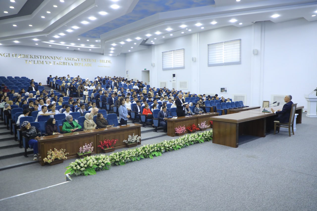 Dastlab, universtet rektori B.Akbaraliyev mamlakatimiz ta’lim tizimini takomillashtirish, ilm-fan va innovatsiyalarni rivojlantirish bo‘yicha yurtboshimiz tomonidan olib borilayotgan keng ko‘lamli islohotlar hamda yoshlarning zamonaviy bilim, ijodiy salohiyat va raqobatbardosh mutaxassis sifatida shakllanishi uchun yaratilayotgan imkoniyatlar haqida so‘zladi. Shuningdek, rektor Andijon davlat universitetida dual ta’lim tizimida nazariy bilimlar bilan birga amaliy ko‘nikmalarni rivojlantirish, sanoat korxonalari bilan hamkorlik qilish, stajirovkalar tashkil etish va talabalarning ishga tayyorligini oshirish borasidagi faoliyatlar haqida ma’lumot berdi.