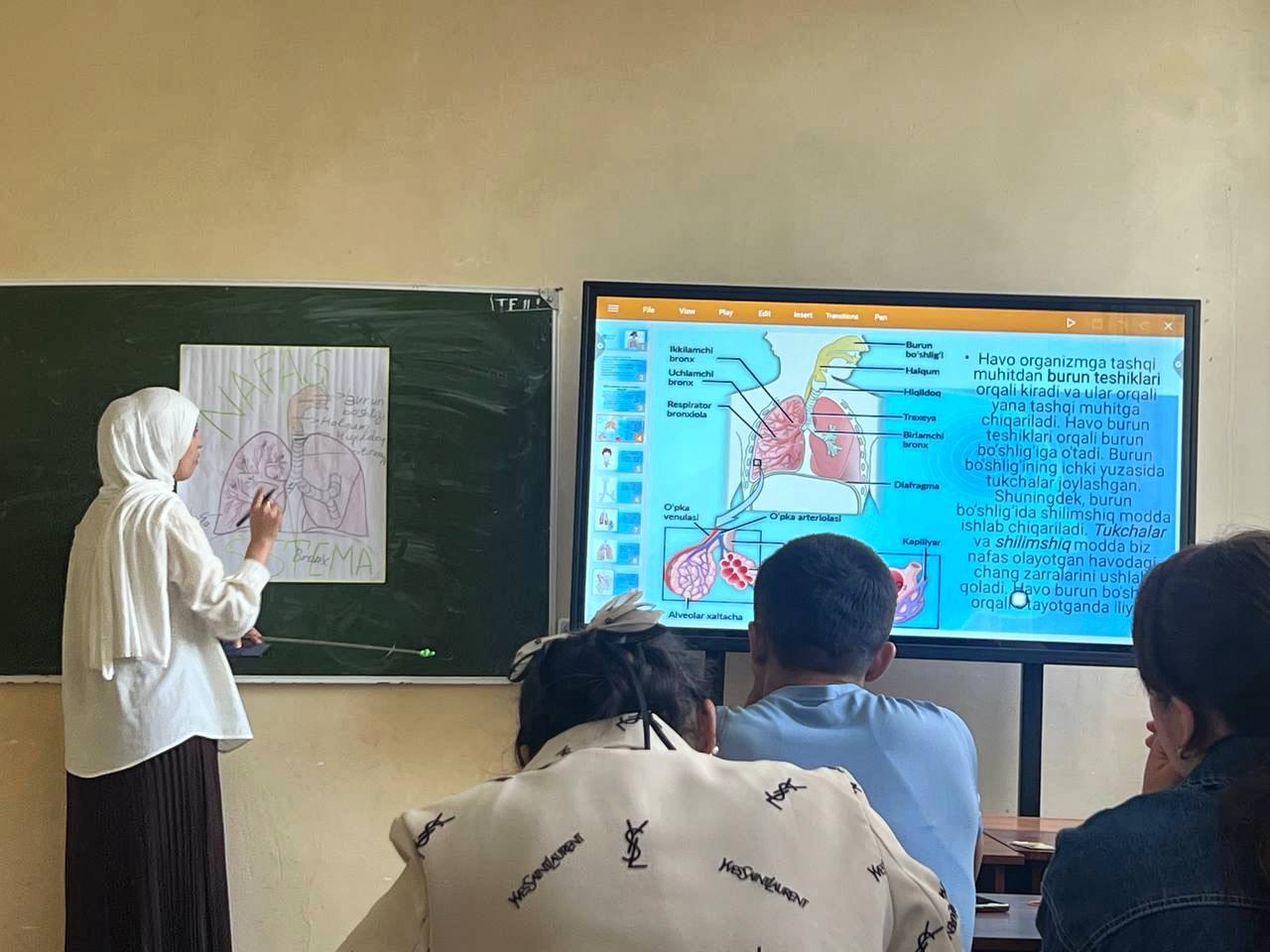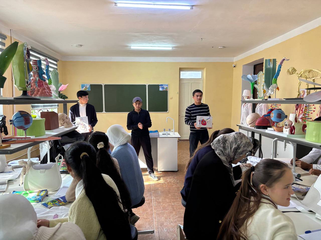 Talabalar biologiya fanini o‘qitishda qo‘llanilayotgan zamonaviy pedagogik texnologiyalar, innovatsion ta’lim usullari va amaliyotga yo‘naltirilgan mashg‘ulotlar bilan yaqindan tanishmoqda. Ular litsey o‘quvchilariga dars berib, tajribali o‘qituvchilarning ilg‘or metodik yondashuvlarini o‘rganmoqda va o‘z kasbiy ko‘nikmalarini mustahkamlab bormoqda.