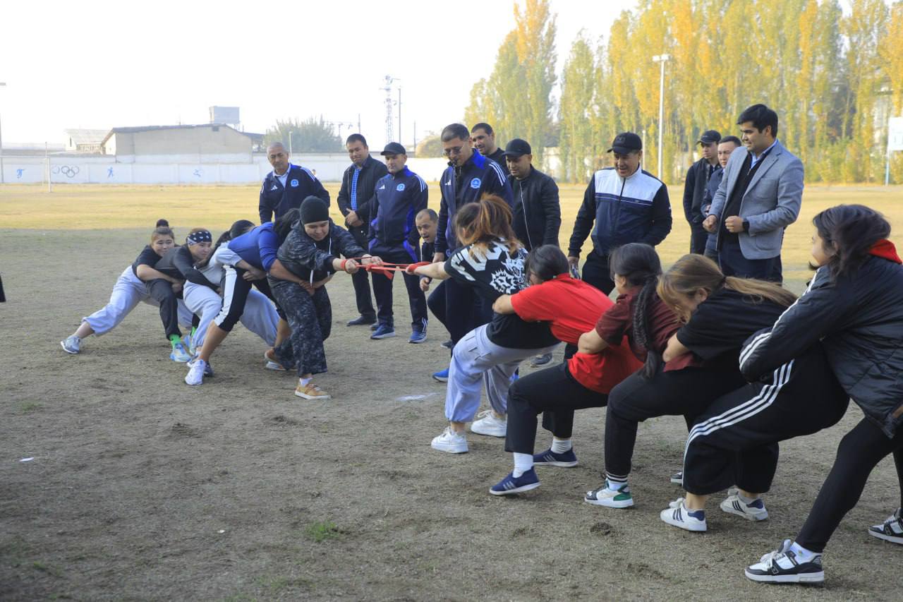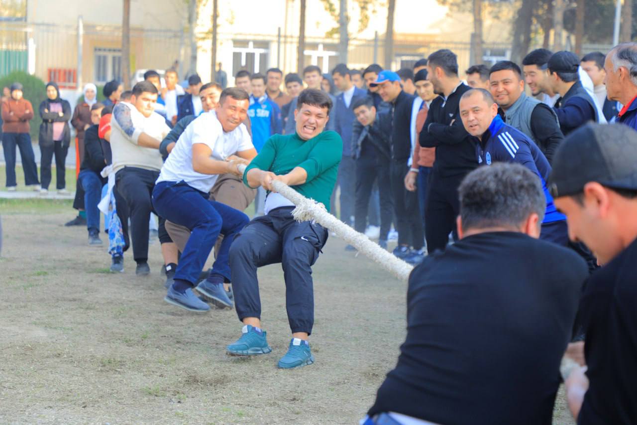 Arqon tortish sport turi bo‘yicha yigitlar o‘rtasida o‘tkazilgan musobaqada: